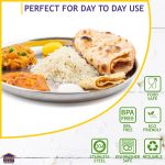 - 🔔IDEAL FOR SERVING MEALS AND SNACKS – Stainless Steel Plates comes in such a design conveniently serving food to people, be it guests or your family, these plates can be used for serving snacks like chole bhature, dosa or full meals like puri bhaji, sabji roti, daal chawal for authentic indian dining experience.