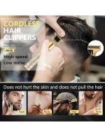 T9 Vintage Professional Hair Trimmer For Men –Golden Metal Body,Cordless,4 Guide Combs,USB Rechargeable,Men’S T9 Golden Metal–Zero Gap Beard & Hair Clipper With Guide Combs & Brush Plastic Gold